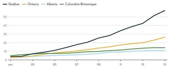 在魁北克人经历了整整一月的自我隔离后,疫情数据仍令人触目惊心。COVID-19在“美丽省”(Belle province)迅速蔓延开来,火势远比其他省份猛烈。这是为什么?受访专家各抒己见,给出的解释不尽相同,但综合起来,具有代表性的有以下几方面:魁北克省的人口数约为850万,尽管比安大略省的人口数(1470万)少近一半,但在COVID-19确诊病例数和病亡数这两项疫情数值上却大幅领先。和西海岸的BC省相比,更是令人错愕。“BC省做得很棒,他们从一开始就完全控制住了疫病的流行”,在蒙特利尔拉丁区诊所工作的流行病学家尼玛·玛舒夫(NimaMachouf)说。以下我们用图形来直观了解一下加拿大境内COVID-19疫情较重的四个省(魁北克省、安大略省、阿尔伯塔省、BC省),百万人口中的COVID-19病亡数演进情况。数据来源于四省的卫生署,数据更新至2020年4月15日:“首先,我们应该抚心自问,‘魁省和其他省存在的显著差异,是事实如此还是理解偏差?”,谢尔布鲁克大学社区健康科学系的教授玛瑞斯·盖伊(Maryse Guay)说。就确诊病例而言,我们知道可能存在偏差。诚然,测试的数量越多,发现的病例就越多。