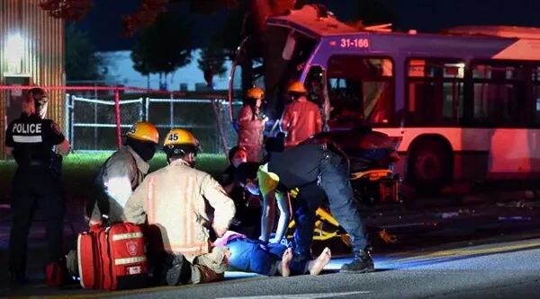 今日凌晨1:15左右,蒙特利尔STM的一辆空驶公交车撞上了一棵大树。警方说,当时正在Notre-Dame街上向西行驶的公交车在Clarence-Gagnon大街附近失去控制。公交车先是撞倒了一个交通标志,然后在撞上一棵树后才彻底停下。