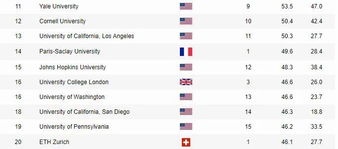 中国科技大和复旦首次跻身全球百强榜,分列第73和第100名。