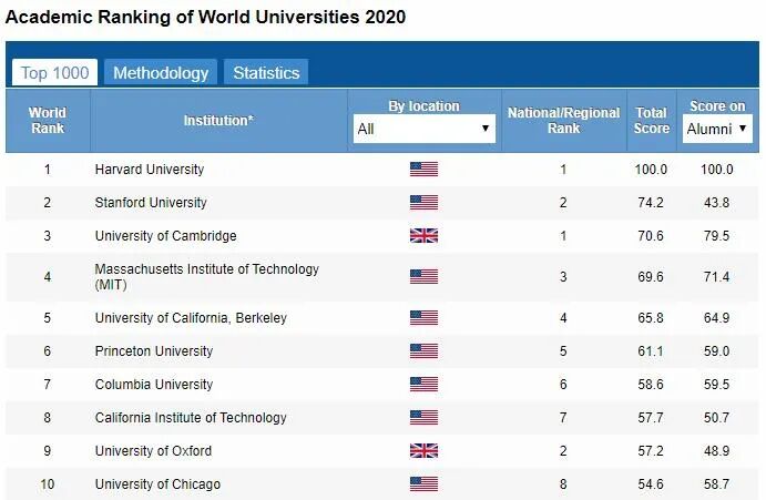 校友获奖(10%):指该大学的校友获得的诺贝尔奖和菲尔兹奖的数量。校友包括在该大学取得了学士、硕士或博士的人。 教师获奖(20%):该大学的教师所获诺贝尔科学奖(物理、化学、生理或医学、经济学)和菲尔兹奖(数学)的折合数。为了更客观,在年代上有所分类,每往回推十年,权重递减10%。 高被引科学奖(20%):世界范围内各学科领域论文被引次数最高的研究人员折合数。 N&S论文(20%):该大学过去五年(2015-2019)在《自然》(Nature)和《科学》(Science)上发表论文的折合数,只统计研究论文(Article)。 国际论文(20%):指该大学过去一年(2019)内被SCIE和SSCI收录的论文数量,只统计研究论文(Article)。SSCI收录论文被赋予2倍权重。 师均学术表现(10%):上述五项指标得分之和除以全时(Full time equivalent)教师数而得。