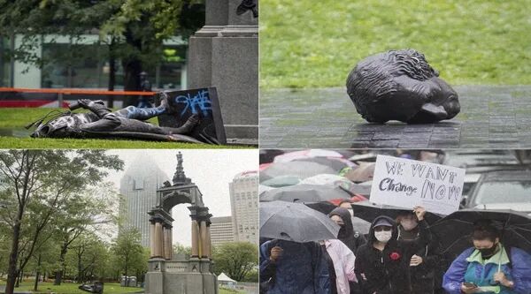 加拿大首位总理塑像被拉倒,警方当时在场但未采取行动 时间:2020-08-31 点击: 作者:魁北客 周六下午,约有200多名抗议者在雨中游行,要求将警察的经费减半,并用于其它公共治安事项比如改善心理健康服务、公民纠纷解决和昏迷急救服务等。示威者最后游行至蒙特利尔市中心的Place du Canada公园,将加拿大首位总理John A. Macdonald塑像拉倒并涂鸦。 蒙特利尔警方当时在场,但未采取行动,只用喇叭规劝示威者。当日的示威游行是加东地区各城市统一行动的一部分,安省多地及哈利法克斯都举行了同一主题的游行示威。 赞 () 分享到: 上一篇 停车证宽限期,9月1日起结束 下一篇 上周末年轻人多次聚集 ,警察对此似乎无能为力 写评论 昵称: 匿名 验证码: 内容: 热 点 信 息