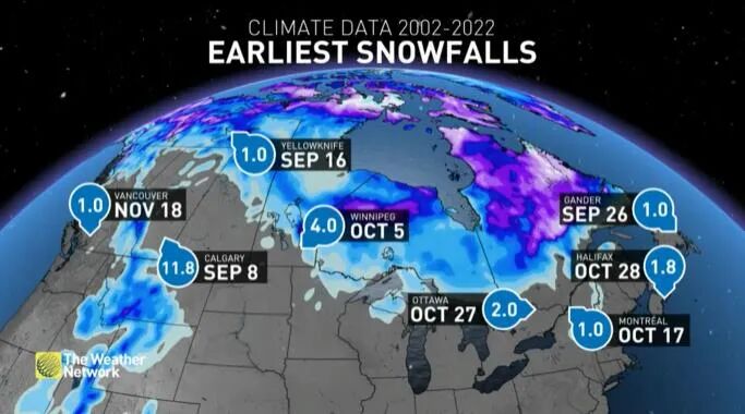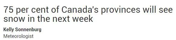 据The Weather Network报道,在接下来的7天内,加拿大13个省和地区中的10个都会在“一阵来自北极的冷气团”的影响下看到今冬初雪。