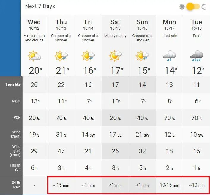 BC省正在经历“气温高于平均值”的气候,本次降雨不会影响到该地区。