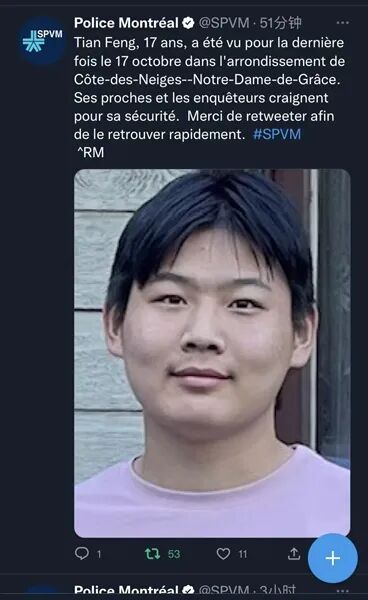 帮忙找人!17岁华人少年失踪,刚来加拿大,语言不太好!