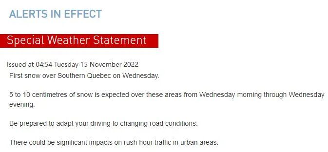 特别提醒:魁省使用冬胎(雪胎)的期限为12月1日至次年3月15日。建议大家抓紧预约,及时换胎。