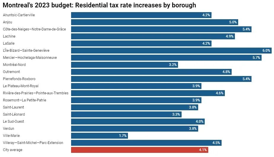 https://montrealgazette.com/news/local-news/montreals-2023-budget-residential-property-taxes-to-rise-average-4-1https://montreal.ctvnews.ca/city-of-montreal-expected-to-announce-highest-tax-increase-since-2010-1.6172734