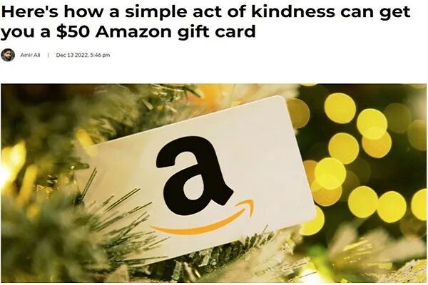 善良的回报就是它自己,亚马逊最近要做一件事——人们只要放下一个承诺就可以当场拿走一张价值$50加元的礼品卡。