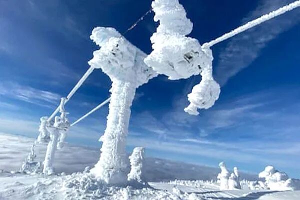 加拿大环境部敦促民众考虑推迟非必要的旅行,直到情况好转。据蒙特利尔地区天气预报显示,今晚6点先冰雨,然后起风改冰粒,入夜降温,小雪越下越大……周四傍晚有望停。加拿大环境部表示,该天气系统将如何发展仍有诸多不确定性。请大家在安排出行之前先关注最新天气预报。别怪小编说实话,相比今冬BC省,魁省这点“混乱天气”根本不算啥。话不多说,以图为证:BC省Okanagan地区滑雪度假村Big White Ski Resort副总裁Michael J. Ballingall近日接受媒体采访时表示,在经历了圣诞新年接二连三的“残暴扭曲天气”后,他们村儿的缆车变成了这个样子…… “2022年底雨雪纷乱,山顶气温在48小时内从-30℃蹿至0℃以上,“突然获得水分的雪会变粘(nian),继而粘(zhan)在缆车上,越粘(zhan)越粘(nian),越粘(nian)越粘(zhan)……”图片中,被冻成雕塑的缆车是度假村中16部缆车之一。它所在的峰顶海拔近2,000米,属于村中最困难的黑色及双黑色钻石滑道。除非积雪到达170-180厘米,否则它不会运行。截至目前,还没有足够的雪能让它启动。据悉,一名员工加一柄铁锤,小心翼翼敲碎冰雕、拯救缆绳座椅转盘机房的破冰行动正在缓慢取得进展。相比BC省“残暴扭曲的冰雕天气”,你再瞅咱大蒙今晚的“儒雅混乱”……是不是就不紧张了?别,千万别,请千万不要不紧张。“地穿甲”还是很烦人的,请一定小心开车。