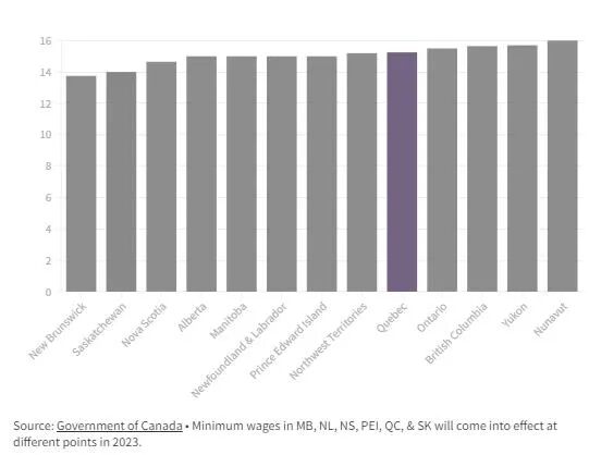 当Boulet宣布提高最低工资的时候,有人再次问及$18加币作为最低工资的可能性。Boulet称:“这对中小型企业来讲是不切实际的。”“$18加币的最低工资必将引发一定量的裁员,在当前的经济环境下,中小企业将会很艰难。”除了魁省外,隔壁安省的最低工资也将在2023年涨至$15.5每小时。加拿大独立企业联合会 (CFIB) 的政策分析师本杰明·鲁斯 (Benjamin Rousse) 告诉 CTV 新闻,最低工资增长7.02% 将对小企业主产生“重大负面影响”。他指出:“企业主已经在努力应对其他问题,包括通货膨胀和劳动力短缺。提高工资和维持小企业生存的最佳方式是政府减轻税收负担。”“如果税收负担减轻,我们立即能看到雇主自动增加雇员的工资,”他说。