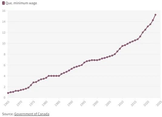 1月18日,魁省发布2023年最低工资新规:从2023年5月1日开始,魁北克省的最低工资将从每小时$14.25增加到$15.25。昨晚,劳工部长Jean Boulet突然公布了这一消息,这是魁省自1995年以来最大的最低工资涨幅——7.02%。整整1加币的加薪,意味着每周工作40小时的最低工资工人每年大约可以多赚2,000加元。对于收小费的工人,最低工资将增加到$12.20加元,增加了$80加分。Boulet指出,即将到来的加薪将使魁省的298,900名员工受益,其中包括164,100名女性。他说:“我们这么做是为了确保最低工资相当于所有魁省雇员平均工资的 50%。”2022 年12月,魁省团结党领袖Gabriel Nadeau-Dubois要求政府将最低工资直接从$14.25加元提高到$18加元。魁省省长François Legault 拒绝了这一提议,尽管他承认“即使是每小时$18加元也很难使人过上体面的生活,尤其是当你有孩子的时候”。