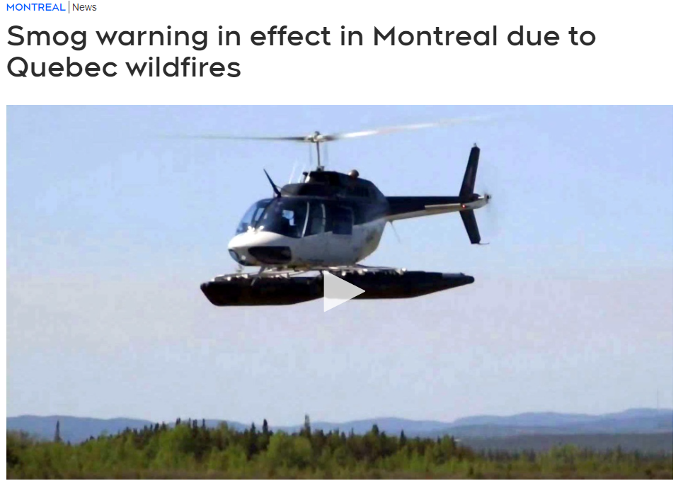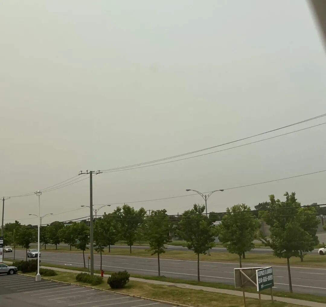由于魁北克森林大火,整个魁北克地区的空气质量都处于令人担忧的水平,今天整个大蒙特利尔地区都处于烟雾警报下。
