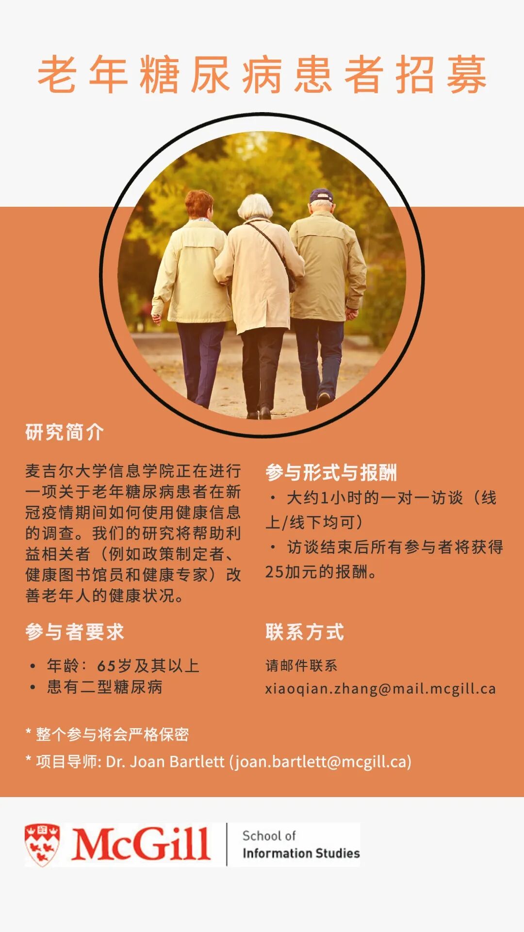 此研究已经被麦吉尔大学批准。任何65岁以上的糖尿病患者都可参与。