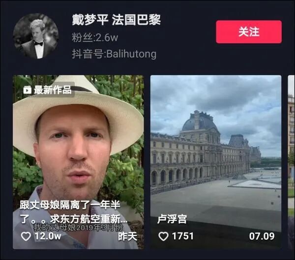 法国小伙戴梦平是一位中国女婿,目前居住在巴黎,平日里喜欢在社交媒体上发布短视频,分享个人生活及介绍法国的风土人情。最近,他一段对其丈母娘大吐苦水的视频火了。很多国内的网友看后都留言表示:这是我们中国的丈母娘,没错了。