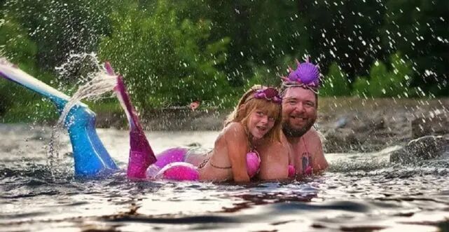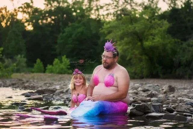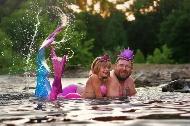 这就是生女儿的下场——陪8岁女儿扮人鱼!一组合照火遍全网!
