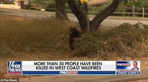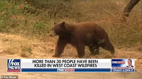 9月12日,一名福克斯新闻的女记者在美国加利福尼亚州蒙罗维亚直播报道山火状况时,意外遭遇一只棕熊。期间,棕熊突然调头向记者飞奔而来……