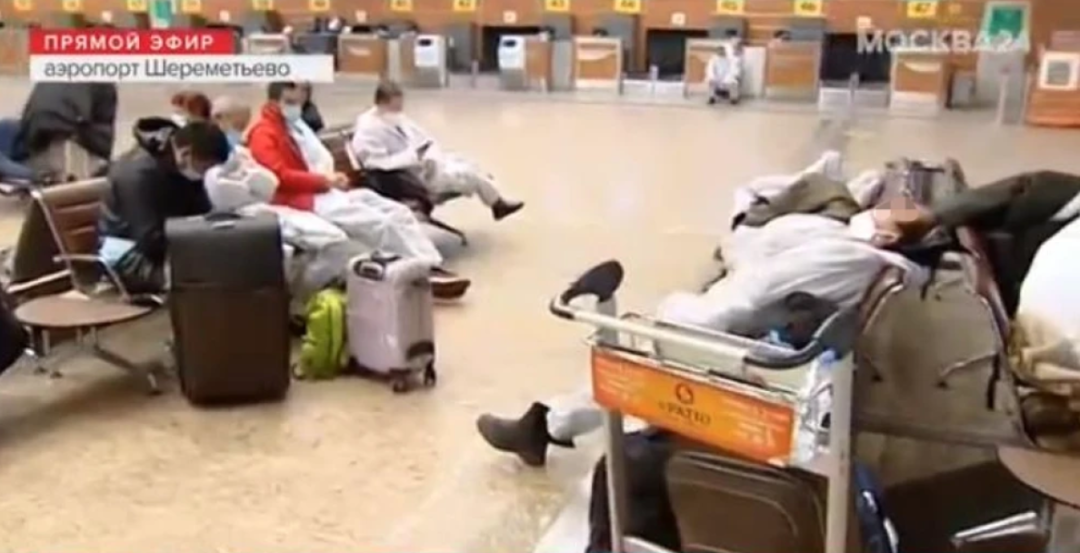 EO429航班乘客滞留机场图 截图莫斯科24台