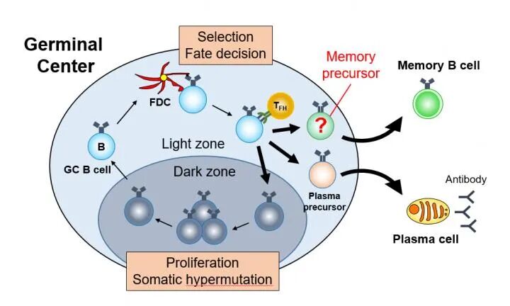这一振奋人心的好消息,是圣路易斯华盛顿大学免疫学家AliEllebedy博士带领团队研究的结果。该团队招募了14名接受过两种不同剂量辉瑞疫苗的志愿者,其中8人之前曾感染过新冠。研究人员在他们的淋巴结中发现,那里产生了被称为“记忆B细胞”的免疫系统细胞。“记忆B细胞”会锁定在入侵病原体的表面,形成标记,便于免疫细胞将其破坏。这些“记忆B细胞”可以在血液中循环数年,甚至数十年。此外,免疫系统还可以调用它们,同时去消灭另外一种感染源。Ali Ellebedy博士说:“发现‘记忆B细胞’是个好兆头,这表明我们的免疫力可以从mRNA疫苗中获得持久性。”研究发现,在感染新冠或接种疫苗后,淋巴结中会形成一个“生发中心”,它相当于“记忆B细胞”的“新兵训练营”——帮助训练“记忆B细胞”识别病毒的基因序列,以及该序列中的任何变种。研究人员从志愿者的淋巴结中分期采集5次样本,分别在接种疫苗后的第3、第4、第5、第7和第15周。结果显示,即使过了4个月之久,志愿者的“生发中心”仍非常活跃,其所训练用于识别病毒的“记忆B细胞”数量没有下降。