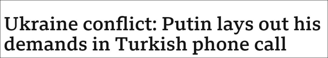土耳其总统府发表声明称,俄罗斯总统普京17日同土耳其总统埃尔多安通电话,详细商讨俄乌局势。普京开出“停战条件”,表示“有意同乌总统泽连斯基面对面谈判”。