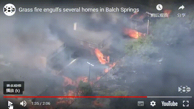 美国广播公司(abc)第八频道报道,当地时间7月25日下午,美国得克萨斯州达拉斯县的巴尔奇斯普林斯市一居民区发生一场大火。当地官员称,这场大火烧毁了至少14座房屋,另有6栋房屋受损。而引发大火的原因,竟是割草时的一粒火星所致。据查,火灾起因是有园丁在附近割草时,割草机刀具与一个金属物体碰撞后引发火花,夏季的干旱天气犹如火上浇油,导致草地成片燃烧。大火从当地20号州际公路和南环线公路交叉口附近的一片草地开始燃烧,并迅速蔓延到附近房屋。希望大家引以为鉴。无论是自己割草还是将工作交予园丁,都要小心留神。若发现火情,第一时间采取措施以避免更大损失。真是“星星之火可以燎原”啊,谁能想到割个草,会这么危险!