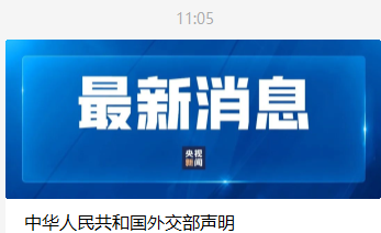 11:05,央视新闻发布微信文章:《中华人民共和国外交部声明》