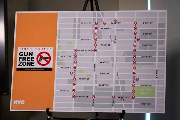 据abc7NY报道,作为“隐蔽持枪改进法”(Concealed Carry Improvement Act)的一部分,纽约州政府“禁止民众在时代广场这样的敏感区域内携带枪支”。