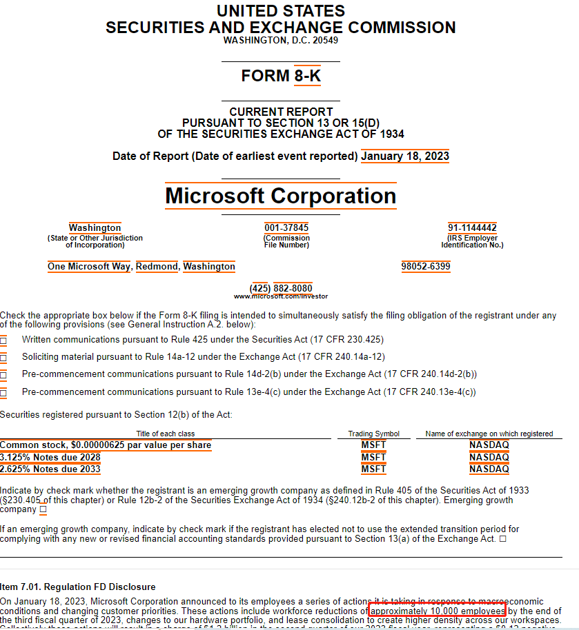 这个消息也体现在了今日微软提交给美国证卷交易委员会(SEC)的备案文件8-K表格中。SEC规定,美国上市公司在发生计划外重大事件时必须通过该表格通知股东和SEC。