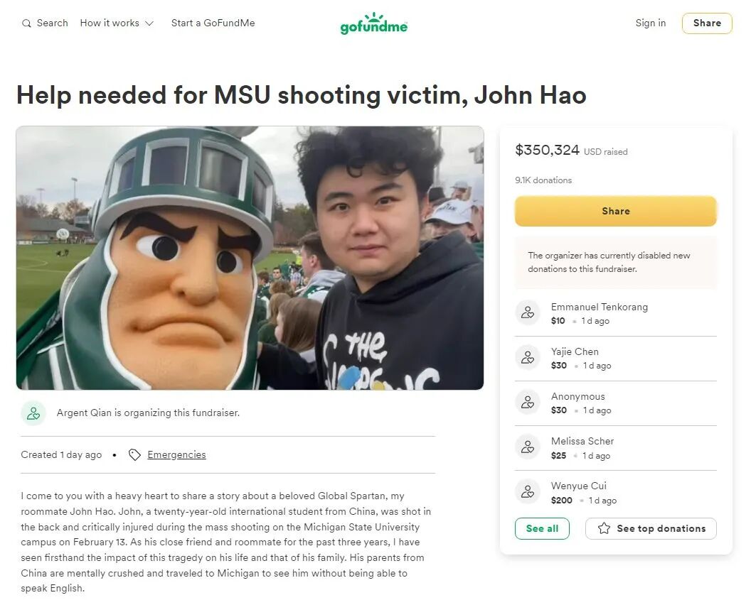 密歇根州立大学枪击案有了新进展……但不幸,是个坏消息:一名年仅20岁中国留学生中枪后胸部以下瘫痪……