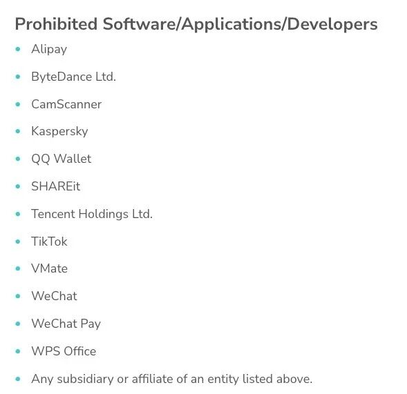 1月23日,美国得州信息资源部就明确列出了得州政府机构禁用的软件,其中就包括支付宝、微信、微信钱包,以及腾讯和字节跳动开发的软件等。