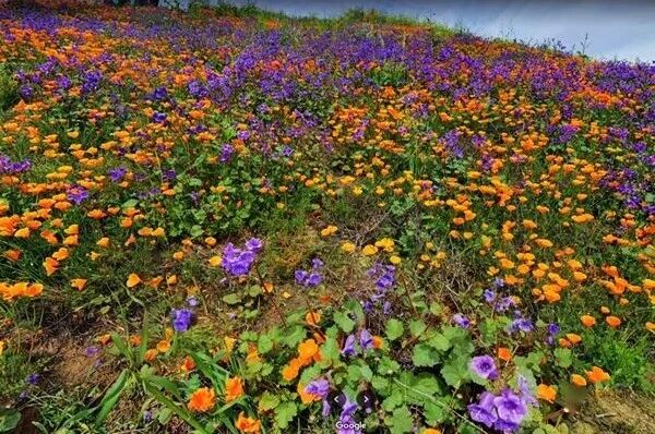 奇诺岗州立公园加州罂粟花海(谷歌地图)