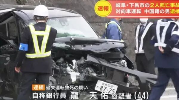最近,在日本名古屋附近发生了一起两辆小轿车迎头相撞的惨烈事故!两名70多岁的女性不幸身亡。据日媒报道,肇事司机是一名44岁的中国籍男子龙某,自称是银行职员,最近一家四口到日本旅游。