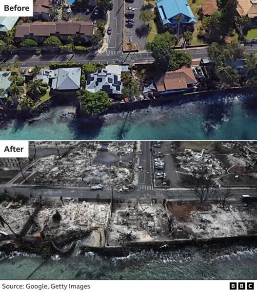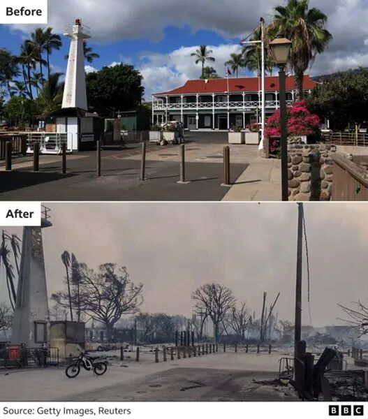 最令人叹息的是历史悠久的海滨小镇拉海纳(Lahaina)……80%的住宅和商店,大约1000多栋建筑,均已化成了灰。