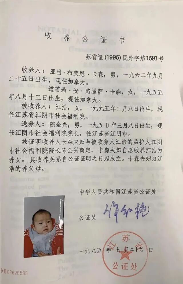材料记载,送Julie到江阴福利院的是周庄镇7组的张小妹同志,Julie的生辰是1995年正月初九,阳历2月8号晚上10点18分。除此以外,没有更多资料。