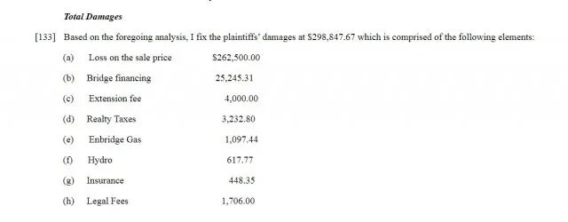 卖家随后将贾先生及其太太告上法庭,原因是因这笔交易无法完成,他们不得不在11月2日再次将房屋挂牌出售,但市场已经是另一番局面。这套房子直到2018年3月9日才售出,成交价是90万元,两次交易的金额差额达26万。而且在等待贾先生完成交易期间,卖家已经签约购买了位于Stouffville的另一处房产,因未及时收到贾先生本该支付的买房款,他们不得不使用桥接贷款,因此又损失了一笔钱。贾先生及太太对此表示,两人的母语都是普通话,英文不流利,学历不高,当时不明白毁约的严重后果,同时他们也状告自己的地产经纪引导他们购买超出他们经济能力的房产,而他们的律师也未向他们说明违约的风险及后果。贾氏夫妇还由此提出了第三方索赔。最终法官认为,贾先生及太太并非第一次买房,理应明白合约中的条款。法官于今年四月判贾氏夫妇赔偿卖家29万多元,包括两次卖房的金额损失及贷款损失等。