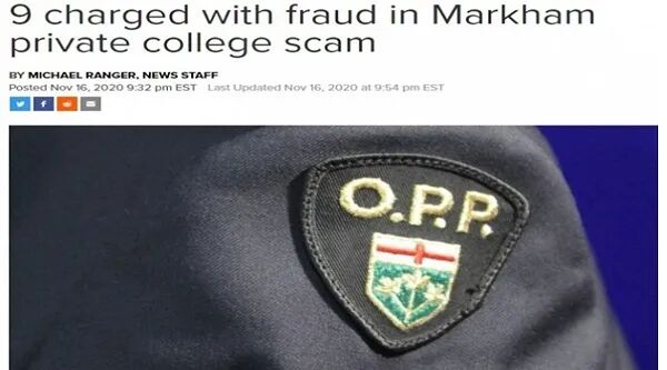 多伦多万锦市一所私立职业培训学院正在接受安省省警调查,与该校有关的9人被控诈骗罪,他们涉嫌在过去6年内诈骗省府 "第二职业培训助学金"。从姓名上看,9人中可能有7名华人。据680news报道,The Royal Institute of Science and Management (RISM) 是位于万锦100 Steelcase Road East的一所私立学院,中文名叫“皇家科学和管理学院”。