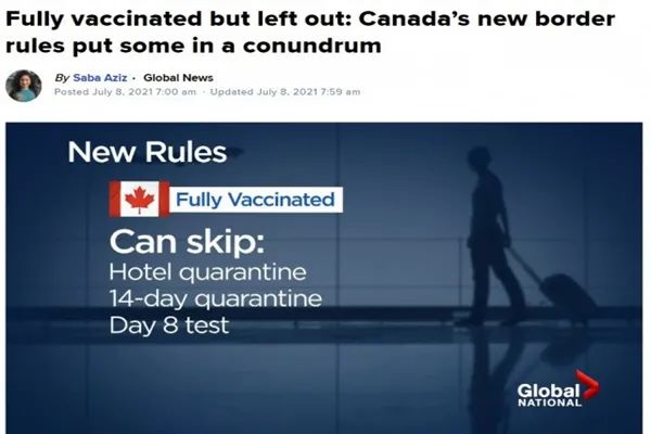 自7月5日起,所有完整接种疫苗、符合条件的航空旅客入境加拿大均可免于被强制隔离14天——但前提是,必须接种加拿大卫生部批准使用的四种疫苗之一。截至目前,联邦政府批准使用的四种新冠疫苗为:辉瑞-BNT、Moderna、阿斯利康和强生。加拿大卫生部目前正在审查的疫苗还有Medicago和Novavax。尽管中国疫苗已被世卫组织 (WHO) 批准,并正在几个亚洲和拉丁美洲国家推广,但加拿大仍尚未向其监管机构提交相关申请。加拿大最新实施的入境新政,让一些在其他国家/地区接种过其他品牌新冠疫苗的人十分不满,包括大批回中国接种了国产疫苗的人。