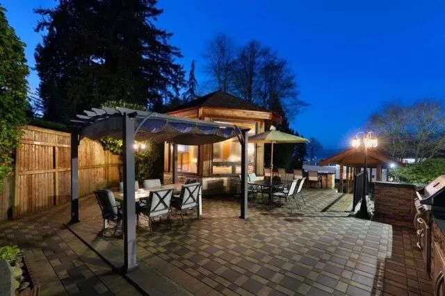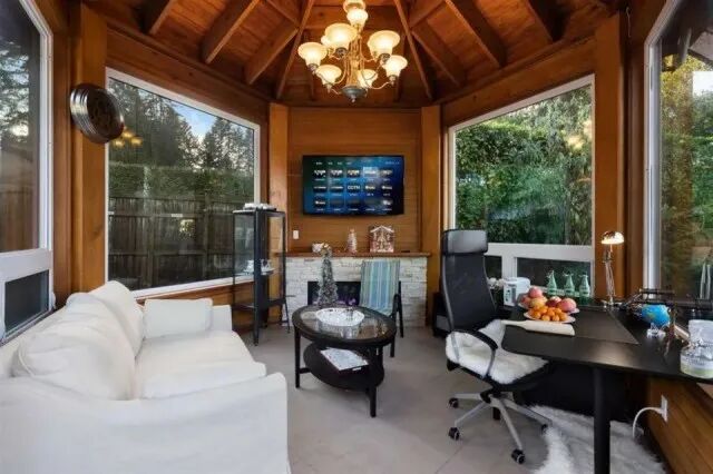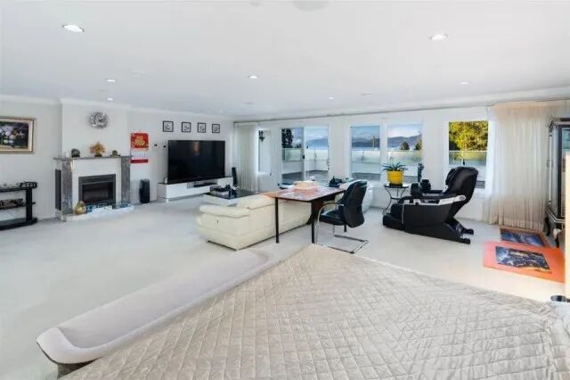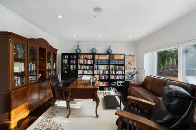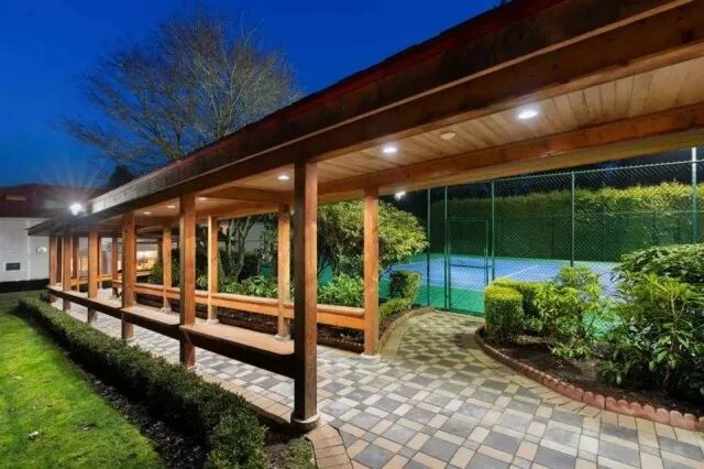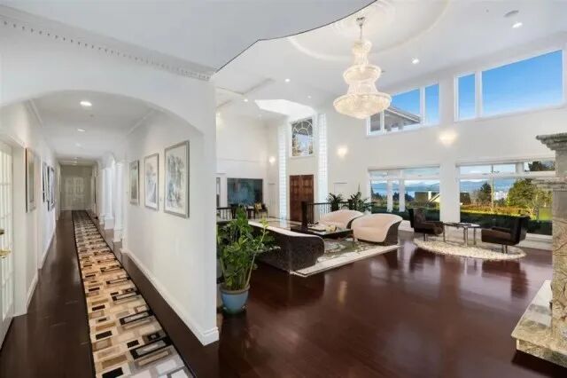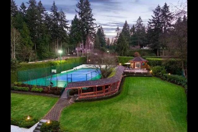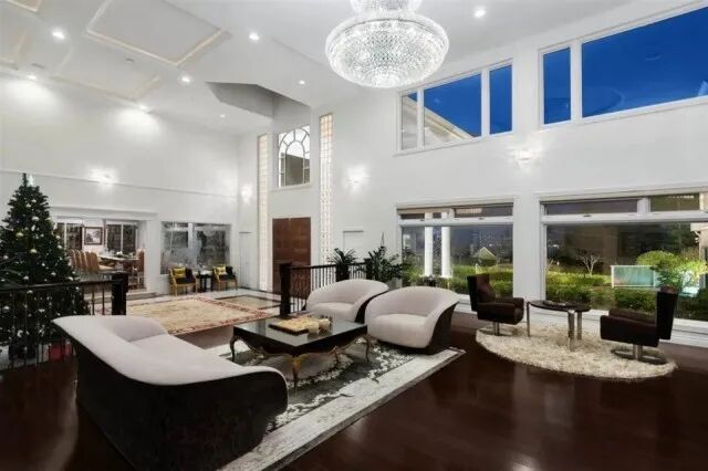 院子里是风景无敌的花园,封闭式凉亭,网球场、篮球场……距知名大学UBC车程极短……房屋装潢无比奢华,偌大的客厅和餐厅,长长的走廊,堪比城堡、胜似迷宫……古典书房,复古家具……也就只有这样的屋子,才配摆上古董与油画,高级感噌噌往上窜。冬天往里一坐,嘿,笑看自家春满楼,轻叹他人瓦上霜……