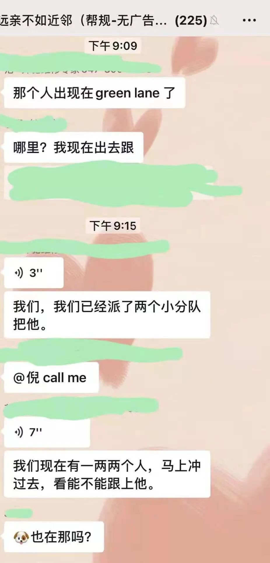 通过同胞们在群里的交流中可以看出:男子似乎已经看过警方在寻找他的新闻,还刻意避开人群遛狗。