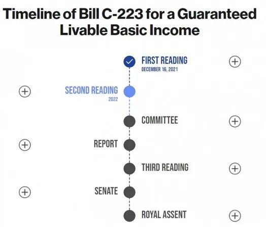 依照程序,二读之后,需成立专门委员会研究并作出报告,相比最后面的参议会和皇家批准二道程序,针对委员会报告的三读将是该法案所面临的最大一道坎。但有一点值得提及,虽然特鲁多自由党目前是少数派政府,但提出此方案的竟然是名新民主党议员,这意味着两党于此方案上已经达成共识,于最终通过有利。如果法案通过,联邦财政部长将在一年之内向国会提交“全民基本收入实施框架”,并定期报告工作进展。如此算来,即便一切顺利,加拿大全民发钱最快也得是起码两年以后的事情了……