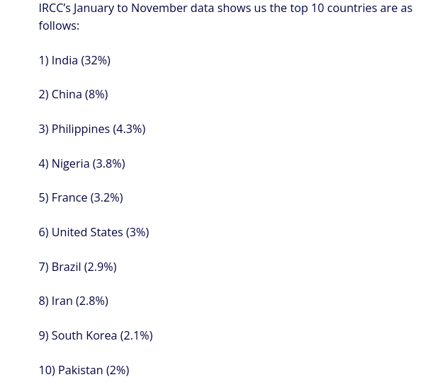 中国是第二大来源地,占8%,约有32,424名来自中国的人士成为加拿大的永久居民。据联邦移民部长在14日向国会递交的2022至2024年的新移民计划书,未来三年目标招收超过130万名新移民。
