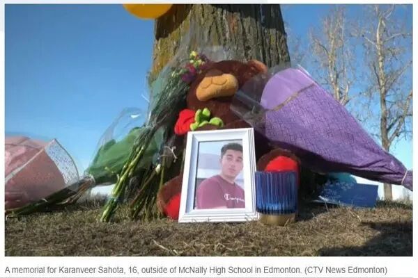 本周一,加拿大埃德蒙顿市法庭披露了一起恶性杀人案件:今年4月8日,一名16岁正在等公交车的少年被七名青少年围殴,而后,七人中的一名14岁男孩掏出刀来将其刺死。据CTV新闻报道,由于法院同时披露涉案6名青少年的指控已从“谋杀”降级为“过失杀人”,本案受害者卡兰维尔·萨霍塔(Karanveer Sahota)的家人周一对司法系统表示了失望。萨霍塔的堂兄莫妮卡宾斯(Monica Binns)在一份声明中写道:“我们的家人对司法程序感到沮丧。”4月22日,萨霍塔在医院去世。尸检结论是:“刺伤”是导致他死亡的最终原因。在萨霍塔去世前,7名嫌犯被埃德蒙顿警察局指控犯有“谋杀未遂罪”。萨霍塔去世后,连同最终行凶的那名14岁男孩,参与殴打的7人都被升级指控为“二级谋杀罪”。7名嫌犯包括:一名17岁女孩、两名16岁男孩、两名15岁男孩以及两名14岁男孩。根据法庭的最新披露,除行凶的14岁男孩仍面临“二级谋杀罪”外,其他六人的指控现已降级为“过失杀人罪”。据报,与事发公交站距离最近的学校,是“麦克纳利高中(McNally High School)”……但由于《青年刑事司法法》,这些青少年目前均无法被确认身份,任何证据目前都被禁止公布。本案下次开庭定于10月11日。魁北客传媒将为您做跟踪报道。