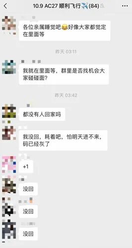 由于时间已至凌晨2、3点钟,外加“核酸、绿码、安检”等诸多问题一直没有得到确切回复,导致大批华人下了飞机之后也不敢远离机场,纷纷选择留在登机口凑合一夜。