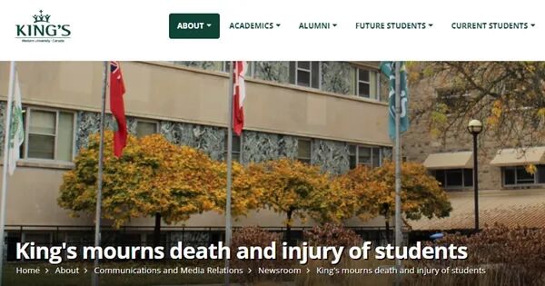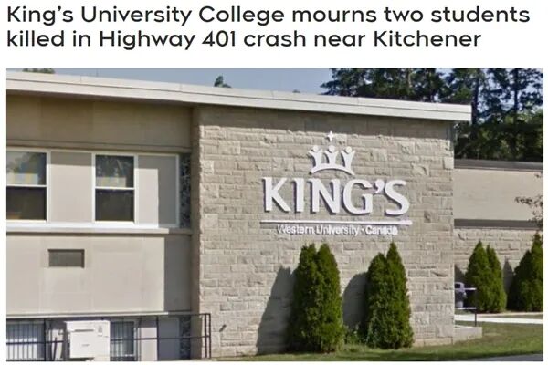安省伦敦国王大学学院(King’s University College)周二发布新闻稿,两名来自中国的留学生在周一发生的“401高速车祸”中丧生,全校师生昨日举行哀悼活动。
