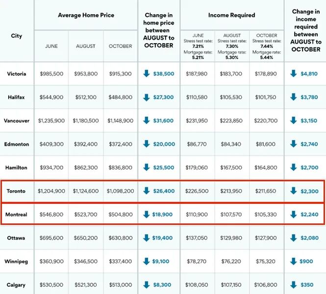近日,房贷经纪业务网站Ratehub.ca发布报告称,在分析对比了加拿大全国10大城市6、8、10月间的“平均房价”与“收入要求”数据之后发现,现在,针对购房者的收入要求已较今年夏季时“显著下降”。