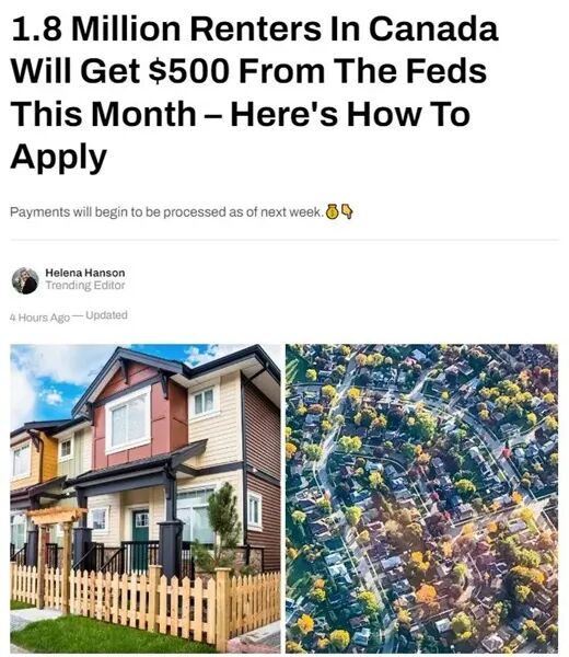 多达180万名加拿大低收入租房者(包括学生)将获得政府发放一次性免税补贴,每人$500加元。此福利金由加拿大税务局(CRA)管理运作,福利总金额约为$12亿加元。