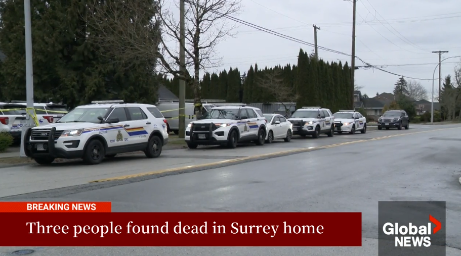 在新闻发布会上,素里皇家骑警证实,三名受害者是一家三口,物业内没有其他人,死因尚未公布。