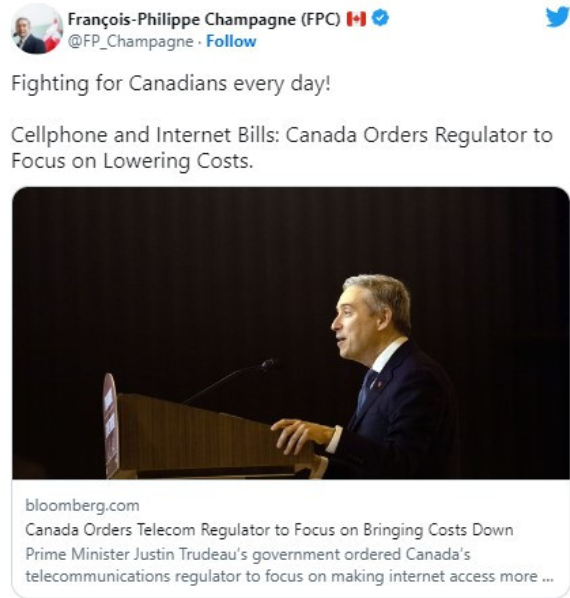 加拿大创新、科学及工业部长商鹏飞(Francois-Philippe Champagne)在2月13日的一份声明中表示:在当今社会和经济中,获得负担得起且可靠的互联网和无线服务至关重要,这就是为什么我们的政府正在使用所有我们可以使用的工具来确保电信服务具有竞争力、可靠,最重要的是,价格可承受。根据著名数据咨询公司Rewheel的报告,将欧盟28个成员国及经合组织国家的手机网络流量GB价格中位数作出比较,与其他拥有多个移动网络运营商(MNO)的国家相比,加拿大在全球定价最高。商鹏飞表示,政府咨询了加拿大居民、组织和企业,并提出了最终的政策方向,将以下目标置于CRTC决策过程的首位:加强批发互联网接入和竞争;增加移动无线竞争;提高服务的可靠性和弹性;改善消费者权益;加快新基建普及;积极改善加拿大残障人士使用电信服务的便利性。商鹏飞说:这些目标将确保在加拿大所有地区,包括农村和偏远地区以及原住民社区,都能以负担得起的价格获得高质量、可靠和有弹性的电信服务。与此同时,电信监管机构批准了移动虚拟网络运营商 (MVNO),为加拿大人提供更多手机供应商选择。新政策为更多公司,尤其是农村地区较小的区域性无线供应商打开了大门,让他们可以访问加拿大电信巨头如Bell、Rogers和Telus的蜂窝网络。根据CRTC的说法,将这些主要供应商的垄断最小化,将有望增加竞争,从而降低手机计划的价格。政策有了,但Bell,Telus和Rogers等电信巨头们尚未回应。何时开始降价?降多少?魁北客传媒帮您盯着。