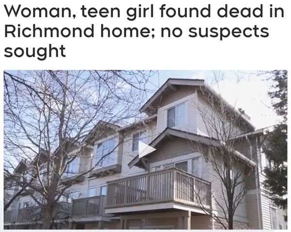 一名14岁少女和一名43岁女子被发现死在大温列治文的一所房子里,死者应该是亲属关系,但是警方称此案中“没有明显的嫌疑人”。