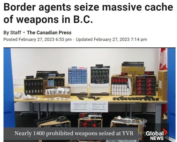 温哥华查获从中国走私来的1350件违禁武器,逮捕1人