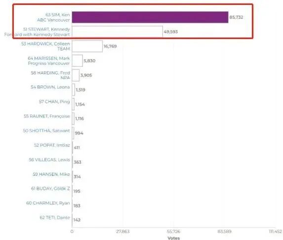2022年10月15日,在温哥华市的市政选举中,前温哥华市长Kennedy Stewart未能成功连任,他输给了华裔候选人沈观健(Ken Sim)。