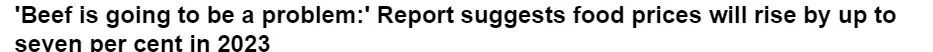 他说,"几个月后,牛肉(价格)将成为一个问题。烧烤季过后,我们可能会看到价格上涨。所以如果你喜欢吃牛肉,我建议现在就囤一些。“如果你喜欢吃橙子或喝橙汁,我也建议现在就买一些。此外,面包是另一个价格较高的食物。所有这些都将推高(整体)食品价格。"该报告指出,2023年餐馆的价格将增长4%至6%,涨幅较为温和。
